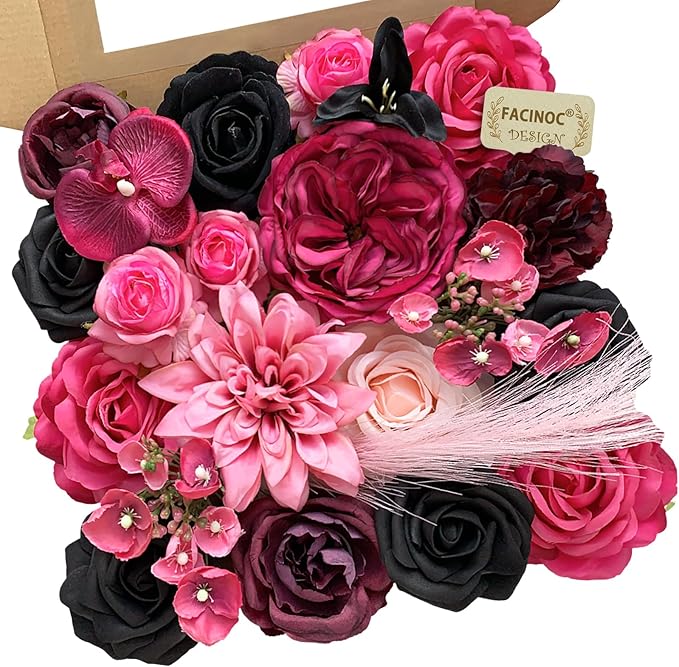 - Pink Roses Artificial Flowers Set: A combo box packs a variety of flowers and colors as vintage, farmhouse, rustic themed wedding. A total of 19 pink fake flowers and 3 accessories, including mixed silk and foam fuchsia roses artificial flowers with stems