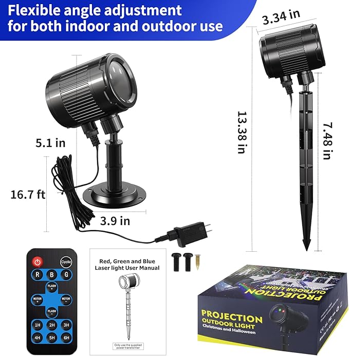 - Easy to Install: Tired of the tangled mess from old string lights every holiday? Our Christmas light projector outdoor easily set up on ground or on wall. The 270°adjustable projector head ensures perfect lighting angles, while the extended 16.4ft power cord reaches outlets, allowing you to place the light anywhere without limitations.