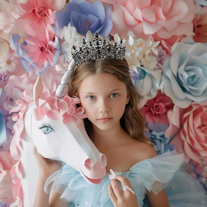 Schmoopy Tiara Crown for Women, Hair Accessories for Party Wedding (B-Black)