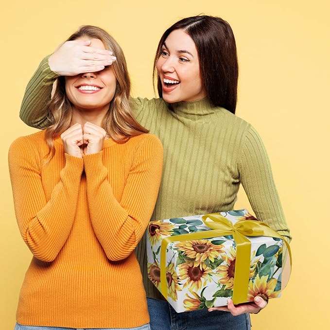 WRAPAHOLIC Kraft Sunflower Wrapping Paper Roll - Mini Roll - 17 Inch x 33 Feet - Perfect for Birthday, Baby Shower, Wedding, Party, Holiday