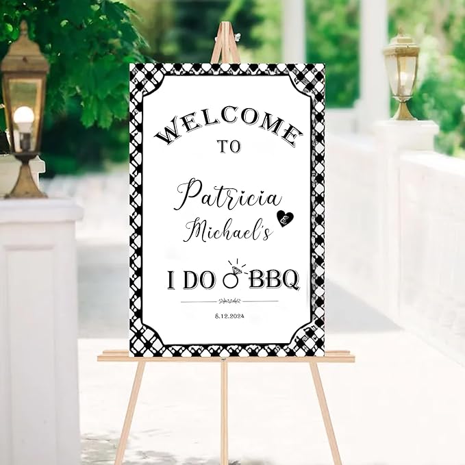 I Do BBQ Welcome Sign, BBQ Welcome Sign, Black White Gingham Engagement Party, Summer I Do Barbeque Yard Sign, BBQ Backyard Signs, Welcome To The I Do BBQ Party Sign