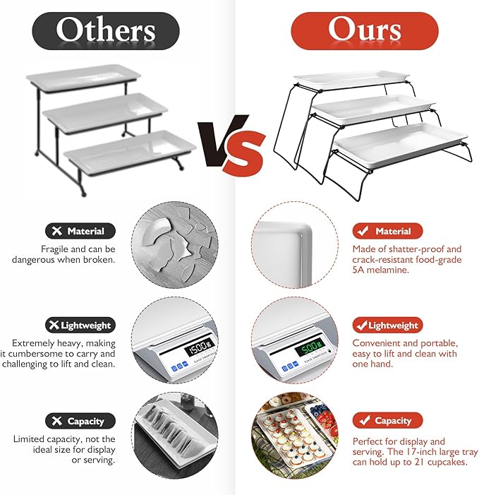 - Easy to Assemble and Clean: Sets up right out of the box with no tools needed. Trays and plates stack for compact storage. The smooth A5 melamine surface wipes clean easily—just use a damp cloth or hand wash, making it ideal for busy hosts.