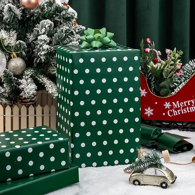 - ππππ ππππππ πππππππ πππππ: The deep green polka dot wrapping paper roll comes with a roll of 17" x 33ft, providing you with a total of 46.3 square feet of paper, enough to wrap SMALL and MEDIUM gifts. Please confirm gift size BEFORE placing order