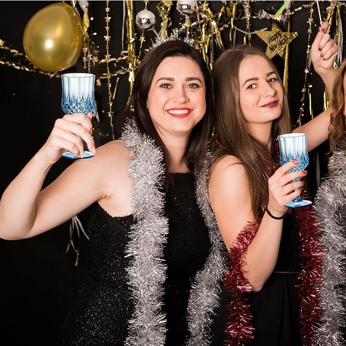 XUWAIDSGN 7oz Plastic Vintage Wine Glasses Drinking Glasses Unbreakable Wedding Glassware Crystal Water Goblets Reusable Drinkware Vintage Champagne Flutes (48, Blue)