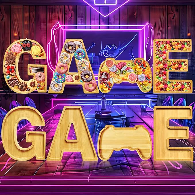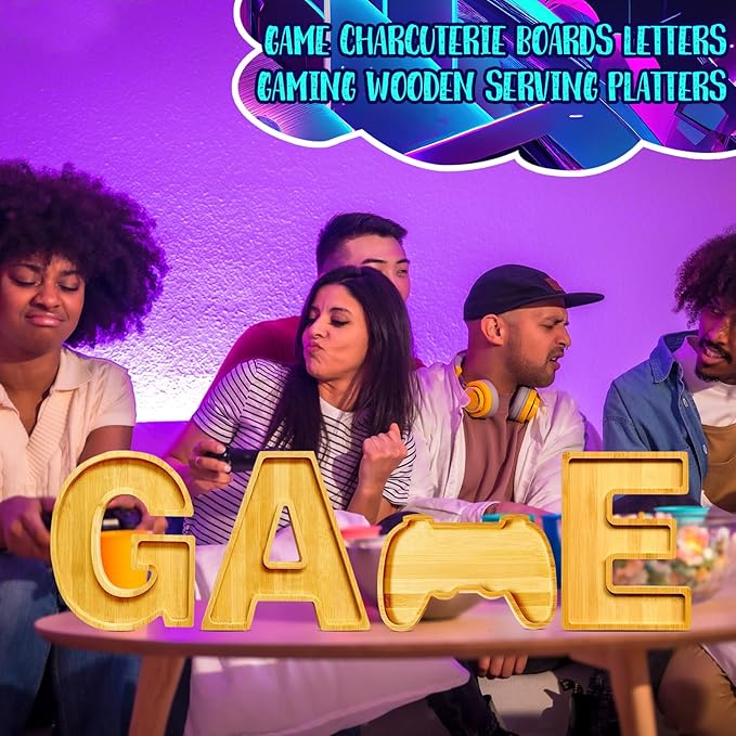 GAME Charcuterie Boards Letters Gaming Wooden Serving Platters for Snack Fruit Meat Fillable Cheese Board Gifts for Teenager Boys Birthday Party Supplies Rustic Tabletop Container Dishes Serving Trays