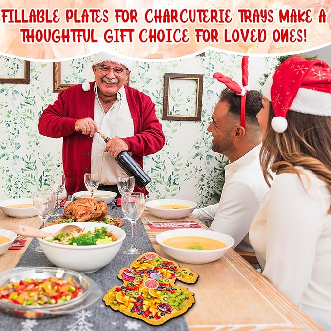 1 PCS Wooden Christmas Serving Trays Christmas Charcuterie Boards for Food Fruit Xmas Serving Platters for 2026 New Year Party Supplies Fillable Holiday Dish Plates for Party Home Tabletop Decoration
