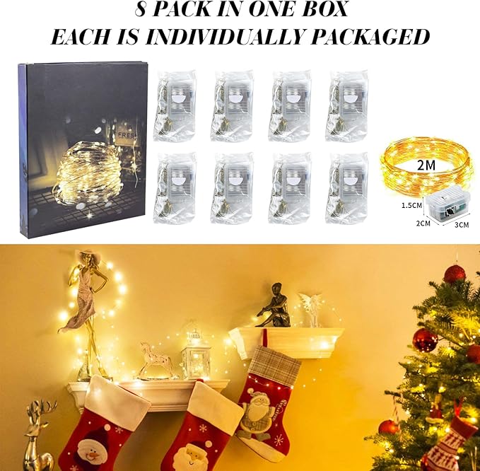 ZGWJ 8 Pack Fairy Lights Battery Operated, 7ft 20 Mini LED Fairy String Lights Silver Wire 3 Modes for DIY, Parties, Wedding, Bedroom, Halloween Christmas Decoration Warm White