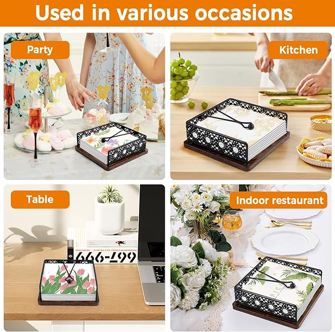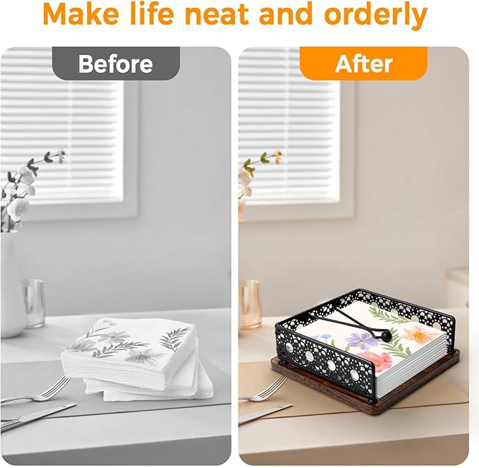 - 【Big Capacity No Installation】The napkin dispenser for farmhouse does not require installation, open the box and immediately put it on the table. It is 7.9"L × 7.9" W × 3.1" H, suitable for almost all sizes of napkins.