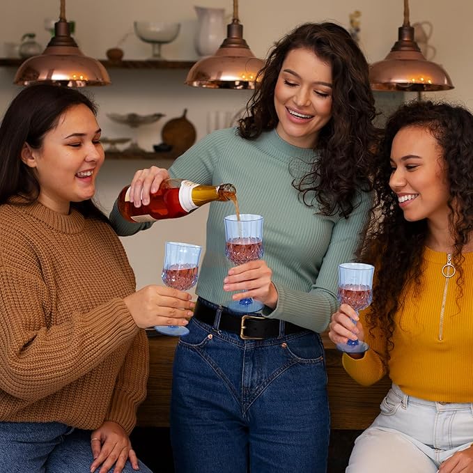 - QUALITY MATERIAL: Our Blue Vintage Wine Glasses are made with a die-casting process for extra sturdiness, and our colors are perforated inside the plastic! It won't lose its color, dishwasher safe and reusable many times, a product that can be with you for a long time, what reason is there to refuse it!