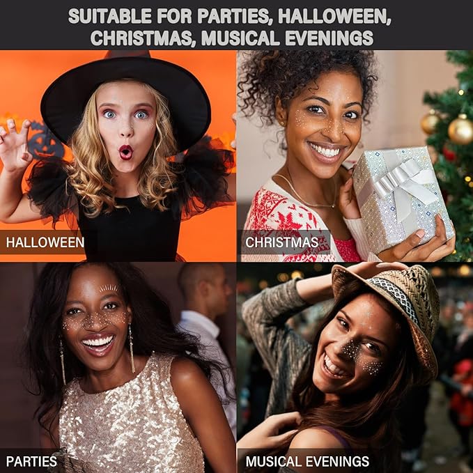 - DIY Face Makeup Patches: This set includes 5 unique shapes and 40 mini patches with easy-to-peel edge design, which can be mixed and matched to create personalised sparkling patterns. Especially suitable for Halloween, Christmas, New Year, birthday as a gift for your wife, girlfriend, kids and friends.