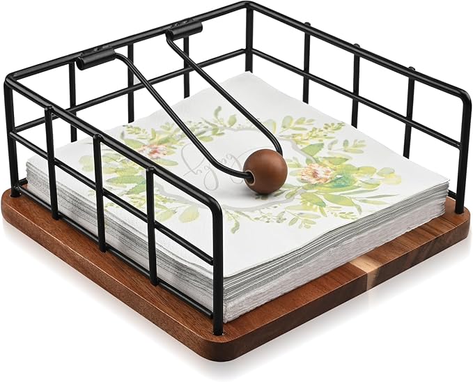 - High-Quality Material: Crafted from natural acacia solid wood, this napkin holder features a sturdy, weighted wooden structure to keep napkins tidy and securely in place. Its smooth surface and rounded edges ensure safe use and easy cleaning—simply wipe with a damp cloth.