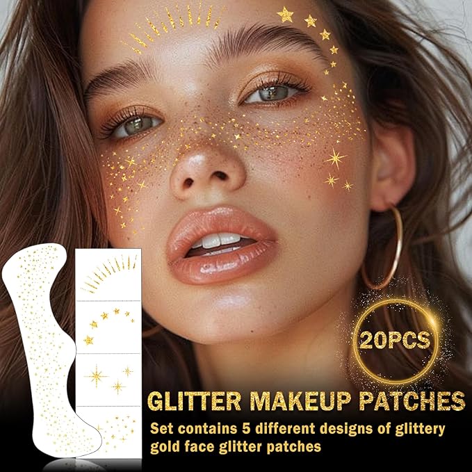 - Glitter Freckles Face Tattoo: Each set contains 5 unique shapes and 40 mini patches of glitter freckles,which can quickly create a sexy freckle look for you,allowing you to exude charming brilliance in the crowd