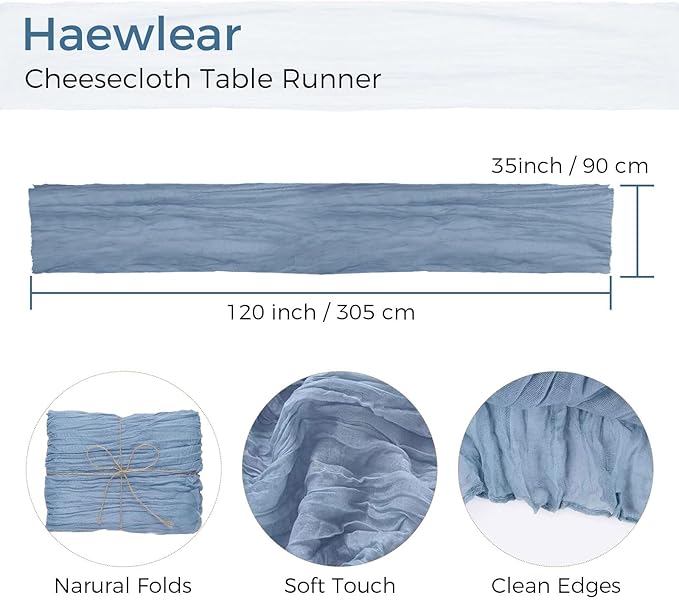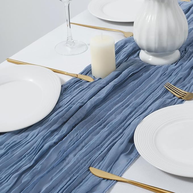 20PCS Dusty Blue Cheesecloth Table Runner 10ft Boho Gauze Fabric Cheese Cloth Table Runner Comes with 20 Cloth Napkins Runner for Romantic Wedding Birthday Shower Party Table Decoration