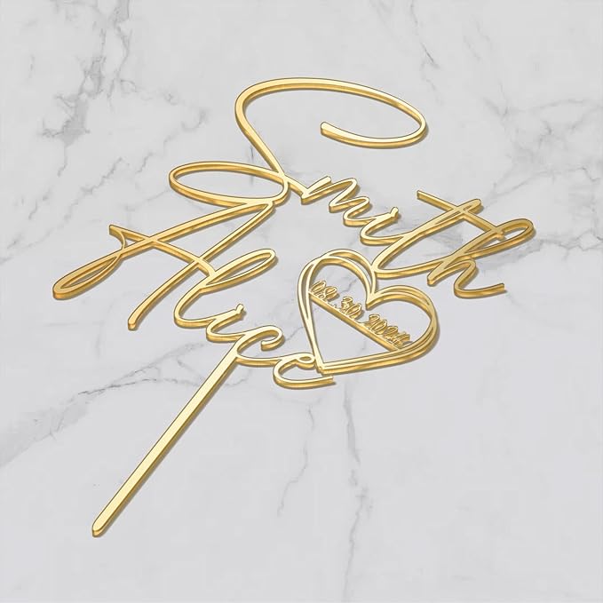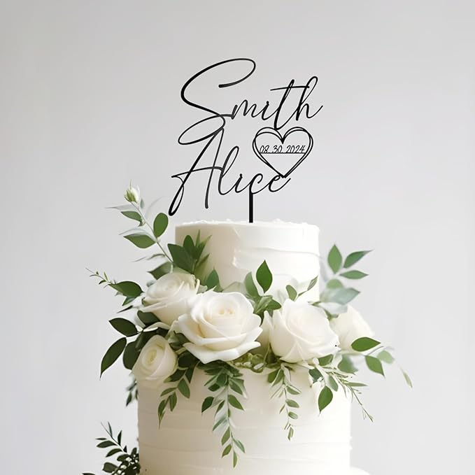 Wedding Cake Topper Custom Bride & Groom's Names and Wedding Date in Heart Personalized Cake Decoration in Acrylic