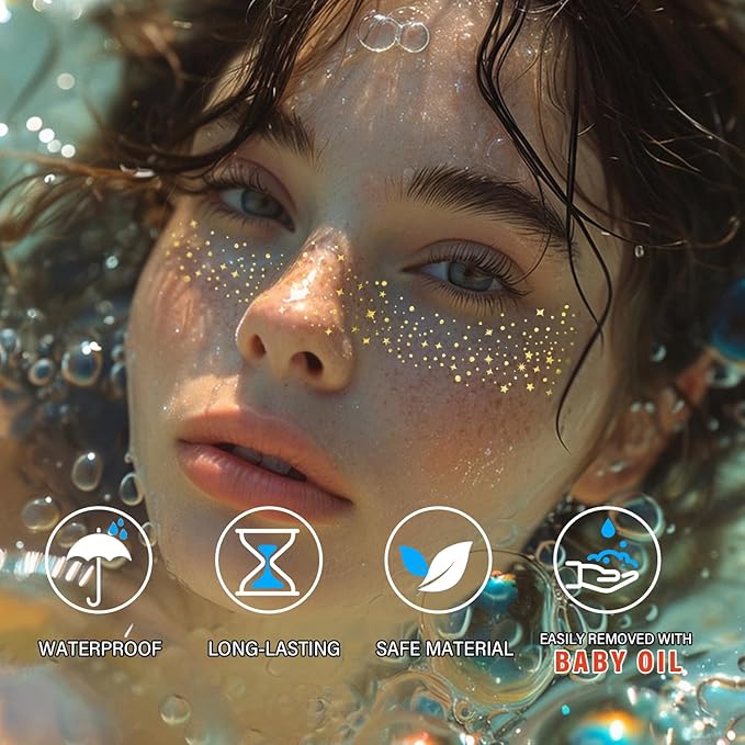 - Easy to remove and cruelty-free: Removal is easy with a make-up remover or cleansing oil, and our face sparkle freckles patches are made with safe ingredients that won't leave any residue.
