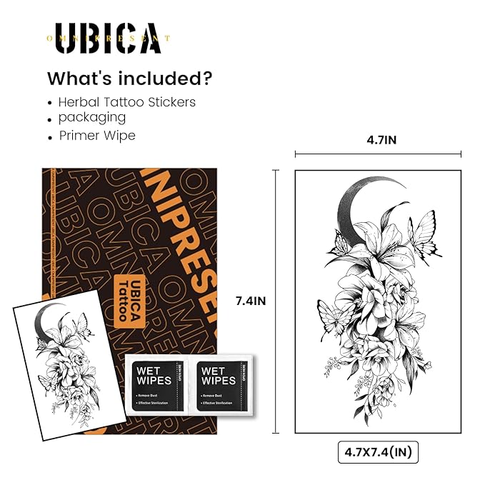 - 【Natural & Skin-Friendly】Made with plant-based extracts and free from harsh chemicals, UBICA semi permanent tattoos are gentle on all skin types—even sensitive skin. Express yourself without irritation!
