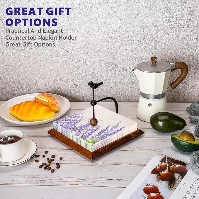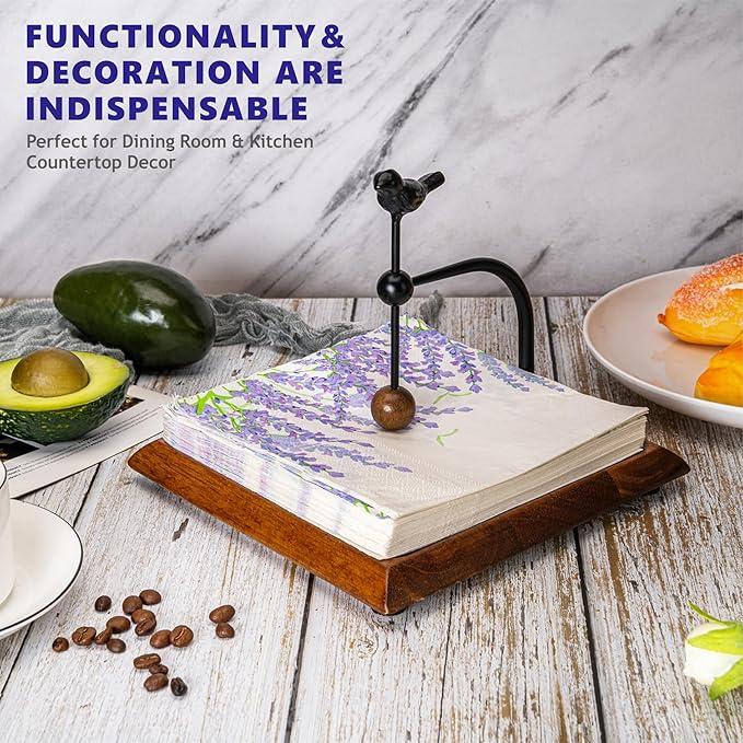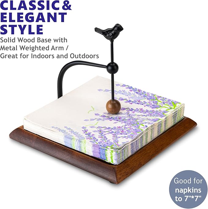 - Charming and Elegant Design: This wooden napkin holder adds a touch of whimsy and elegance to any space with its beautiful bird-shaped handle and natural wood base. The combination of sleek metal with a weighted arm creates a perfect balance of rustic charm and modern design, making it a stylish addition to any kitchen, dining table, or café. Its unique design also makes this napkin holder for table a standout feature in your home décor.