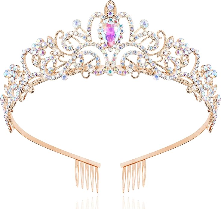 - π[Side-Comb Design] The both sides of princess tiaras for girls are designed with comb. Holds the queen crown well on your head. No more worries about your rose gold tiara falling off on the move. The lightweight structure and adjustable comb provide a fit and gentle grip. Make you pretty without any discomfort.