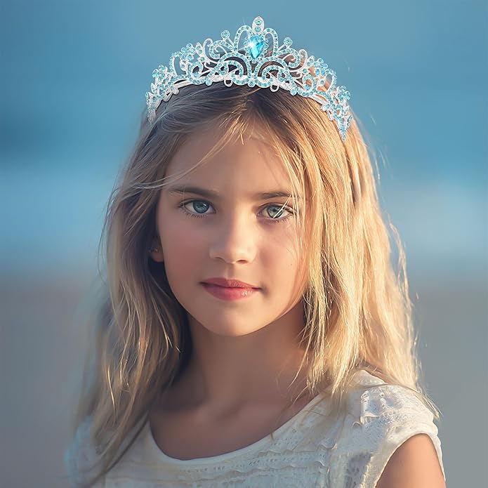- ♕[Side-Comb Design] The both sides of princess tiaras for girls are designed with comb. Holds the queen crown well on your head. No more worries about your blue tiara falling off on the move. The lightweight structure and adjustable comb provide a fit and gentle grip. Make you pretty without any discomfort.