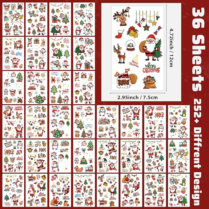 - 【Happy Christmas】36 Sheets Christmas Tattoos Stickers, Xmas Day Fake Tattoos for Adults, Party Favors Decoration, Nice makeup for kids, a great deal for kids and adults having fun. Funny temporary tattoos sticker set include variety of little boys and girls favorite Christmas patterns