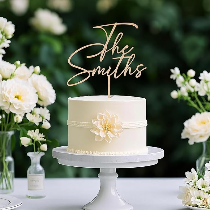 Wedding Cake Topper Personalized Cake Decoration Custom Bride and Groom's Last Name in Wood