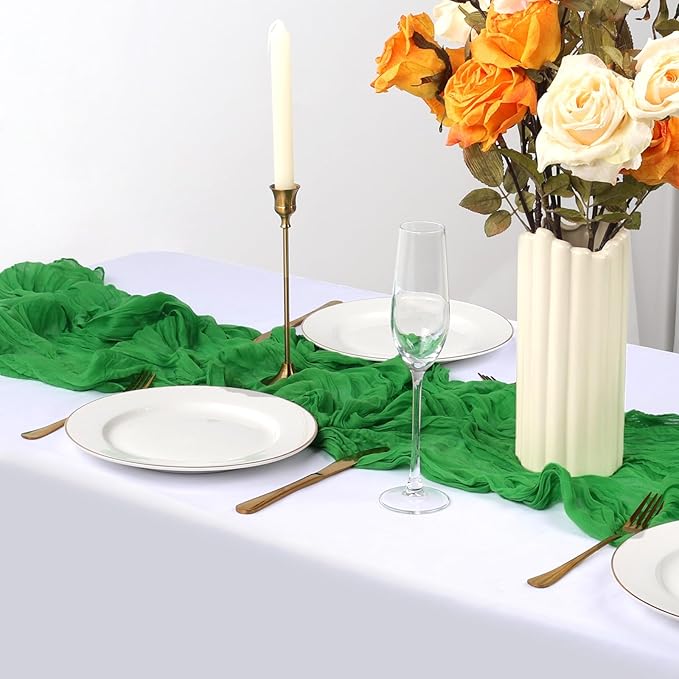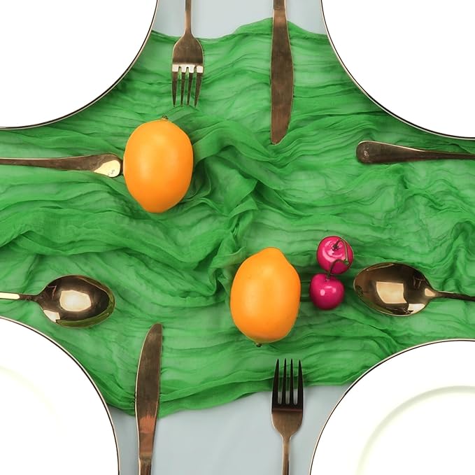 - 【Easy to Care】These green cheese cloth table runner are skin-friendly and recommended for hand wash in cold water with mild detergent or machine wash in a laundry bag. In order to keep its crinkling texture, please do not iron it or use fabric softeners. For a long time use, please hung them up to dry, avoid bleaching or drying in direct sunlight, or their color may fade.
