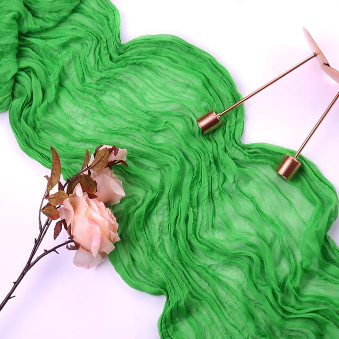 - 【Perfect Looking】These cheese cloth table runner are made from polyester fabric with beautiful wrinkles, which is reusable, flexible and tear resistant. Thanks to natural material and exquisite workmanship, green table runner are lightweight, soft and comfortable to touch, no pilling and no fading. The rustic boho style with delicate edges and stitches will make your events more romantic and elegant.