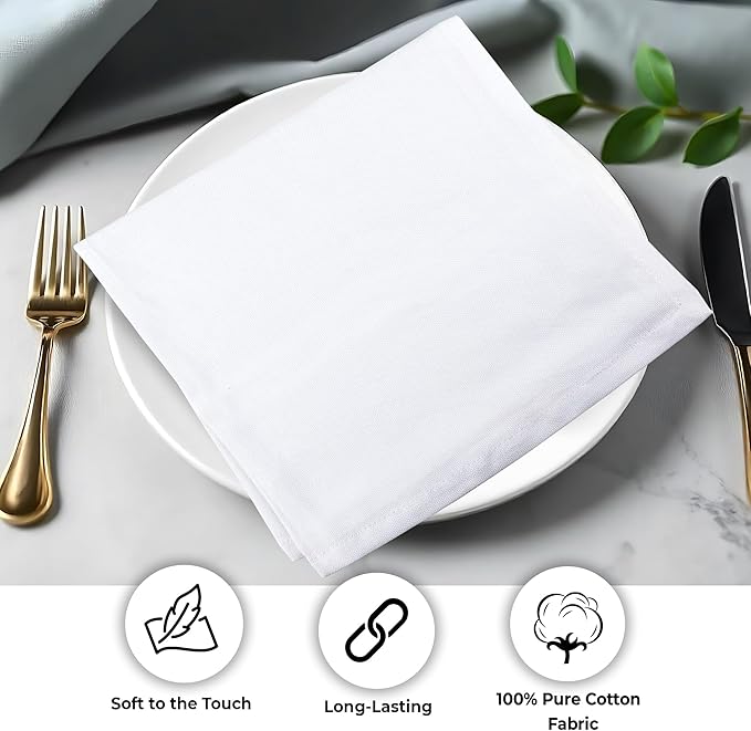 - SOFT COTTON : Made from 100% Premium cotton these Dinner Napkins are skin friendly, Eco friendly and Food Safe at the same time making fashion sustainable. Min shrinkage after wash makes these napkins reusable adding a Great value for money compared to Paper and disposable Napkins