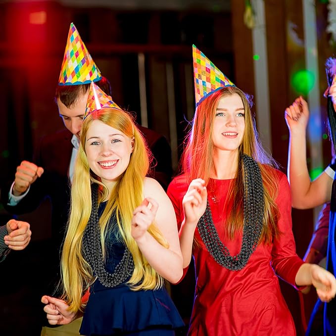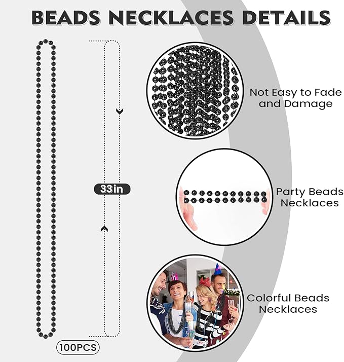 - Black Beads Necklaces: You will get 100 pcs black bead necklaces, bulk round beaded necklaces, a sufficient number to meet your home and party decoration needs at various holiday events. Ideal Mardi Gras decorations