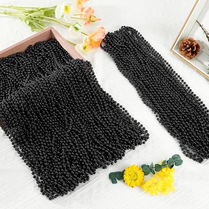 - Premium Bead Necklaces: Black necklaces made of high quality plastic, not easy to fade and damage, lightweight and easy to carry. Black beads necklaces, perfect for festival parade throwing. Ideal Halloween Accessories