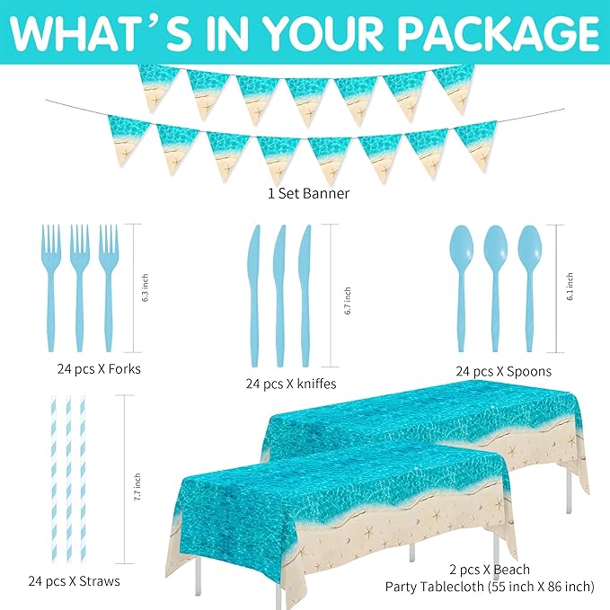 - 【Applicable Occasions】Whether you're throwing a beach party, birthday bash, beach wedding party, sea shell theme party, beach bachelorette party, summer BBQ, or an ocean-themed baby shower, these ocean beach theme party suppies sets are a must-have. They're designed to add fun to any event, big or small