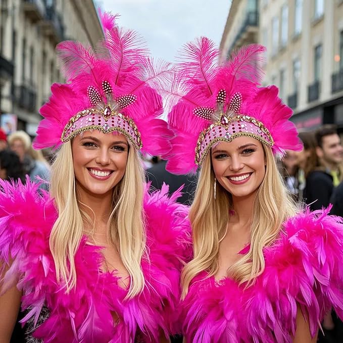 - Multiple Occasions:These sequin feather headdress can be paired with any style of clothing, perfect for Carnivals,Caribbean Parade,Halloween,Weddings,birthdays, parties,dances and any other retro style occasion. Add elegance and charm to your look