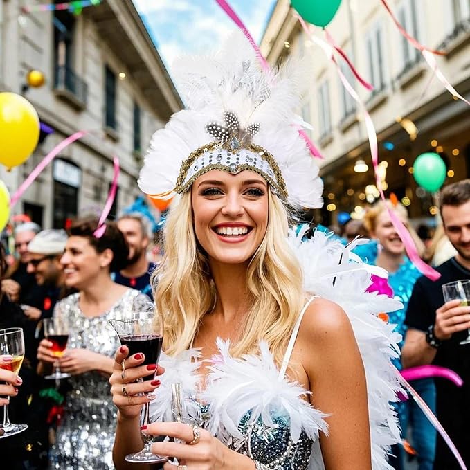 • Multiple Occasions:These sequin feather headdress can be paired with any style of clothing, perfect for Carnivals,Caribbean Parade,Halloween,Weddings,birthdays, parties,dances and any other retro style occasion. Add elegance and charm to your look