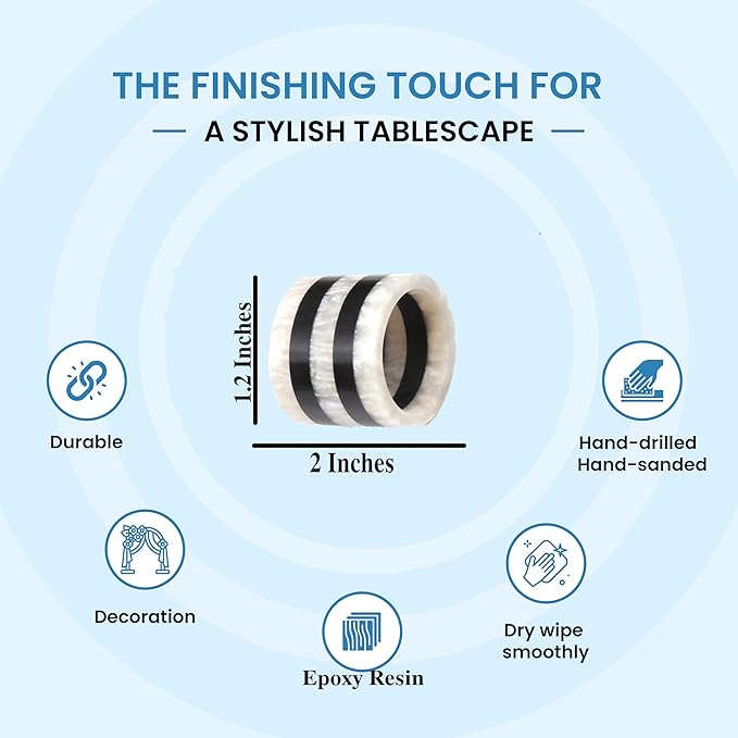 12-Pcs Epoxy Resin Napkin Rings - Handmade Elegant Napkin Holders for Table Décor, Dining, Weddings, Holidays & Special Events - Durable & Lightweight, Easy to Clean (Black White) - CLEENTABLE