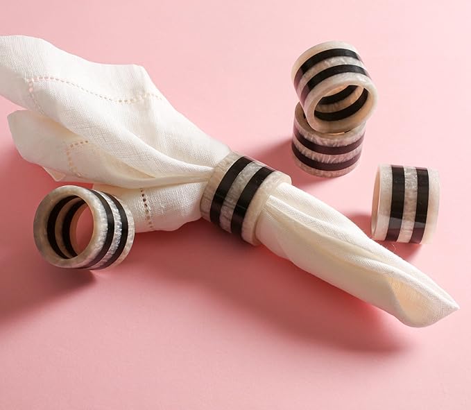 - ✅ PERFECT SIZE & PACK: Set of 12 napkin rings in stylish black & white, measuring 2 x 2 x 1.25 inches - ideal for any table setting.