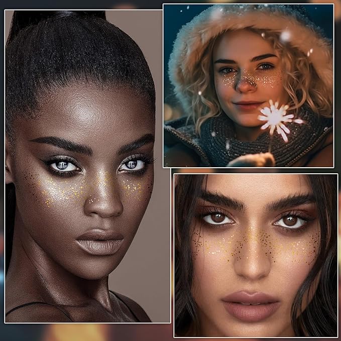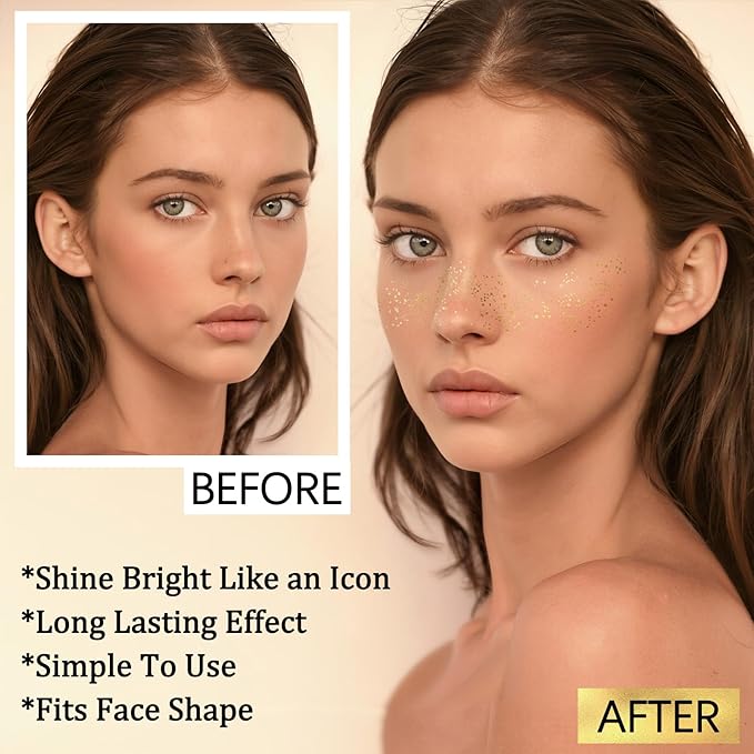 - Fun Sparkling and Beautiful: If you're looking to elevate your beauty routine with a touch of sparkle, Yazhiji Gold Glitter Freckles Kit could be your new favorite accessory, adding a touch of sparkle to your face. It includes 24pcs glitter freckles face tattoos that you can use it for many times. Each patch is adorned with shimmering speckles to highlight your beauty.