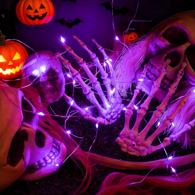ZGWJ 50 Pack Fairy Lights Battery Operated, 7ft 20 Mini LED Fairy String Lights Silver Wire 3 Modes for DIY, Parties, Wedding, Bedroom, Halloween Christmas Decoration Purple