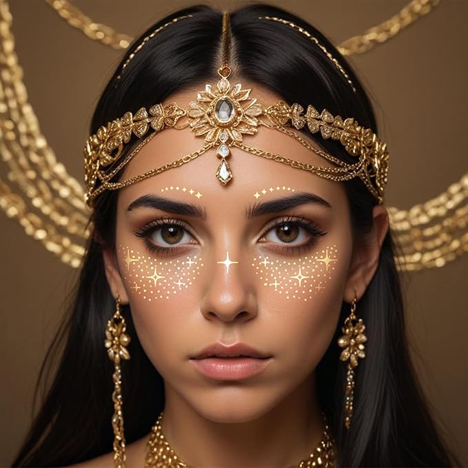 - ✿【Gold Face temporary tattoo】: comes with 12 sheets of temporary waterproof face tattoos in eye-catching patterns, assorted sizes and shapes, look shining and mysterious, plenty of numbers and different styles to add more fun to Halloween cosplay and other theme parties,you can show your taste by sticking these freckle temp tattoo on your face, vivid and attractive stickers will make you stand out from the crowd and give you a good festival experience.