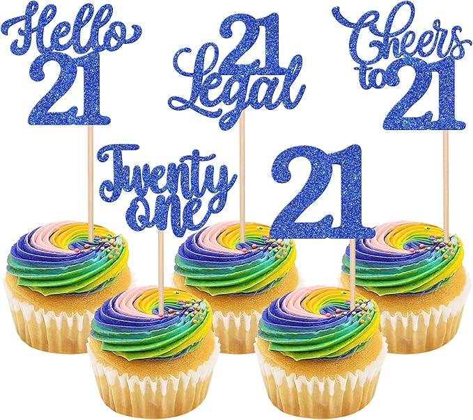 - Wide Usages ! These 21st birthday cupcake toppers are perfect for happy 21st bithday theme party, hello 21 theme birthday party, 21st wedding anniversary theme party,cheers to 21 years theme party,legal 21 theme party cupcake decorations, they can make your cupcake more attractive and bring the fun to your party.You can also apply them for ice cream, fruits, cookies and other desserts.