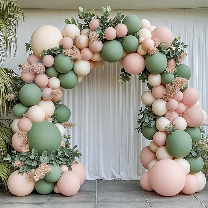 - 【Widely Applications】: The dark green light pink balloons is suitable for any event, such as birthday, bridal shower, Wedding, engagement, spring party, gender reveal party, bride to be,princess party ,boho party and so on. This double stuffed green nude pink balloons make your party more charm.