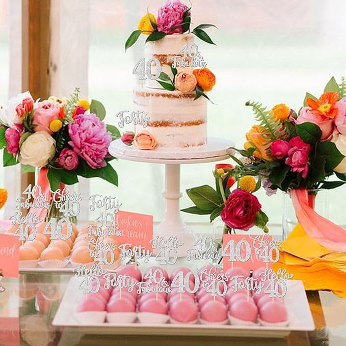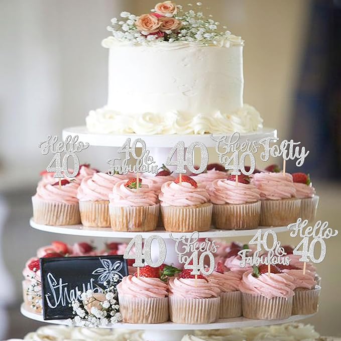 - Wide Usages ! These 40th birthday cupcake toppers are perfect for happy 40th bithday theme party, hello 40 theme birthday party, 40th wedding anniversary theme party,cheers to 40 years theme party cupcake decorations, they can make your cupcake more attractive and bring the fun to your party.You can also apply them for ice cream, fruits, cookies and other desserts.