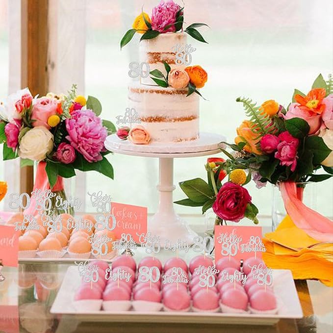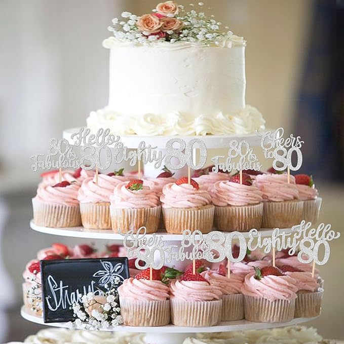 - Wide Usages ! These 80th birthday cupcake toppers are perfect for happy 80th bithday theme party, hello 80 theme birthday party, 80th wedding anniversary theme party,cheers to 80 years theme party cupcake decorations, they can make your cupcake more attractive and bring the fun to your party.You can also apply them for ice cream, fruits, cookies and other desserts.