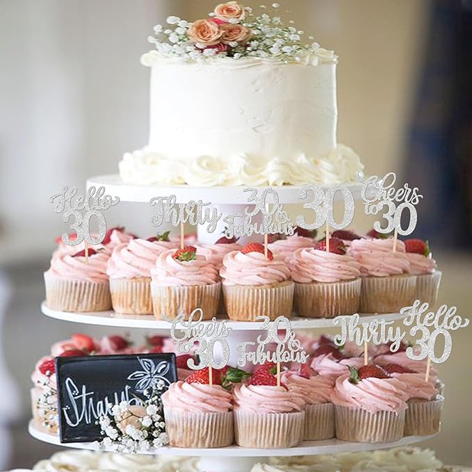 - Wide Usages ! These 30th birthday cupcake toppers are perfect for happy 30th bithday theme party, hello 30 theme birthday party, 30th wedding anniversary theme party,cheers to 30 years theme party cupcake decorations, they can make your cupcake more attractive and bring the fun to your party.You can also apply them for ice cream, fruits, cookies and other desserts.