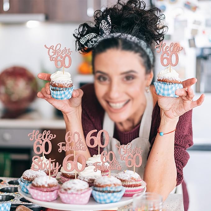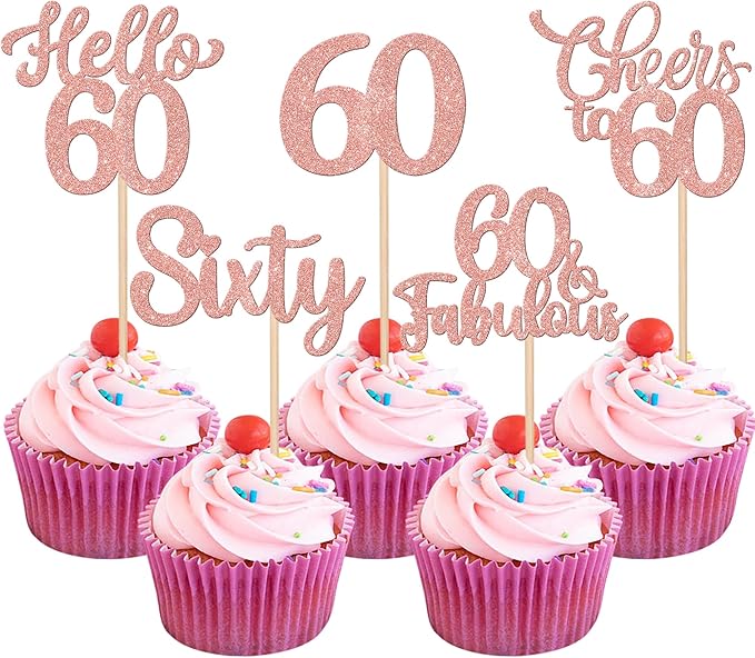 - Wide Usages ! These 60th birthday cupcake toppers are perfect for happy 60th bithday theme party, hello 60 theme birthday party, 60th wedding anniversary theme party,cheers to 60 years theme party cupcake decorations, they can make your cupcake more attractive and bring the fun to your party.You can also apply them for ice cream, fruits, cookies and other desserts.