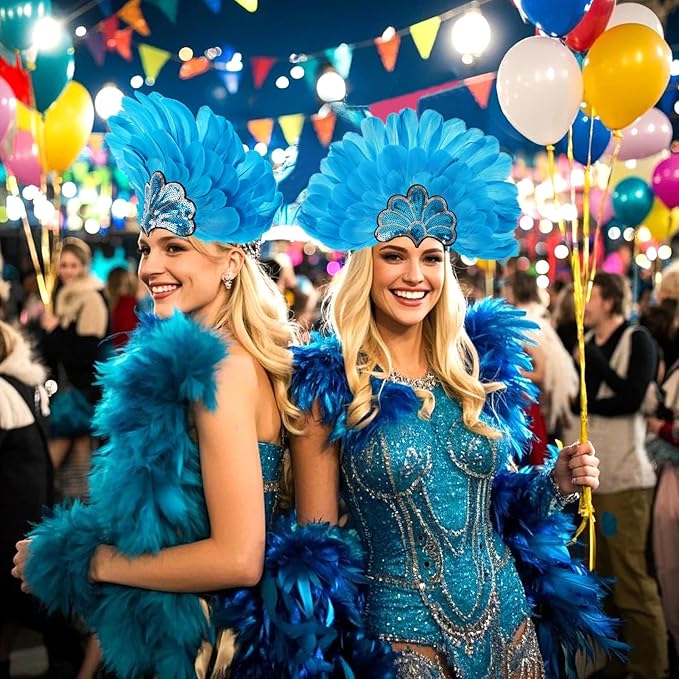 - Multiple Occasions:These sequin feather headdress can be paired with any style of clothing, perfect for Carnivals,Caribbean Parade,Halloween,Weddings,birthdays, parties,dances and any other retro style occasion. Add elegance and charm to your look