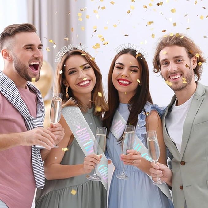 - The Perfect Birthday Crown for Girls and Women: Silver"BIRTHDAY GIRL ” Sash + Rhinestone Tiara Gifts Set.