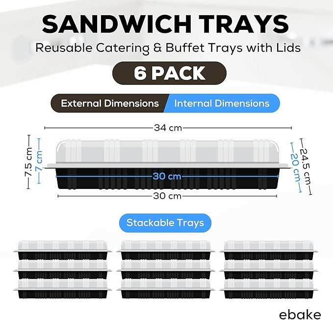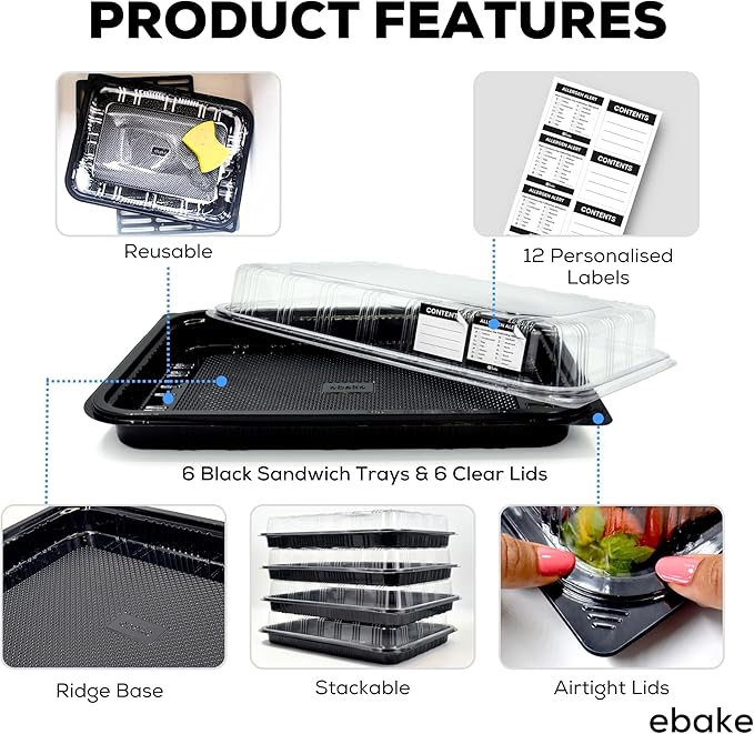 - πγ Versatile & Easy to Use γThe crystal-clear plastic lids provide a secure seal, keeping your sandwiches fresh and protected during transportation or storage. Plus, their transparency allows you to showcase your culinary creations without even opening the lids. And while these appetizer trays for parties excel at sandwich presentation, they're versatile. You may use them for serving finger foods, appetizers, desserts, or as a meal prep container. The possibilities are endless!