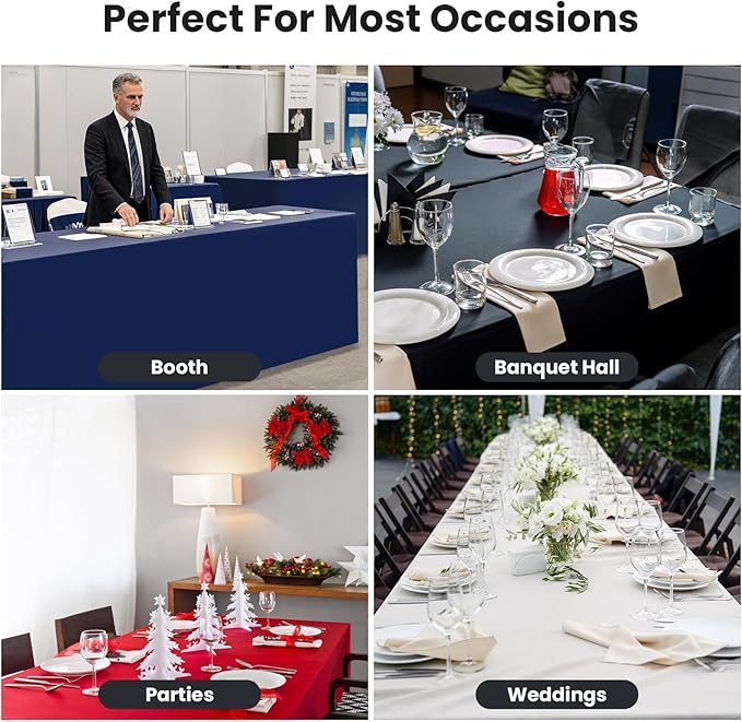 - Applicable Occasion:This kind of tablecloth is very suitable for parties, wedding, banquet, buffet, display, vendors, tradeshows, jewelry shows, craft fair, book fair, career fairhotels, crafters or convention dealers, DJ and more
