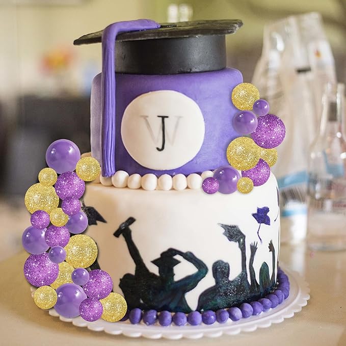 BEISHIDA 40 Pcs Ball Cake Toppers Mini Balls Cake Decorations Purple Gold Foam Balls DIY Cake Topper for Baking Congrats Grade 2025 Graduation Birthday Mardi Gras Lakers Decorations (Purple Gold)