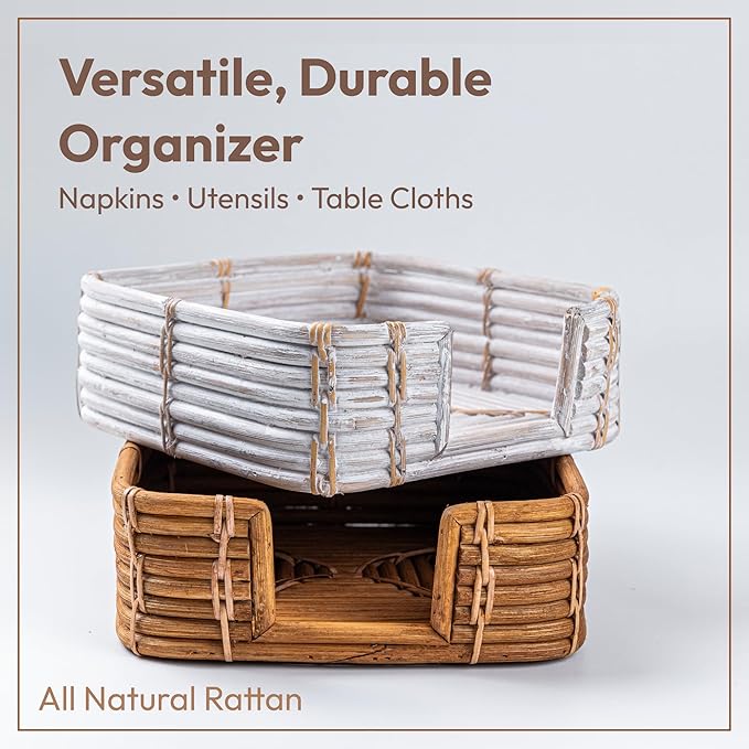 - OPEN-TOP FOR EASY ACCESS – Designed with a smart side cut-out, this rattan paper napkin holder allows effortless access—perfect for everyday use, parties, or guest bathrooms.